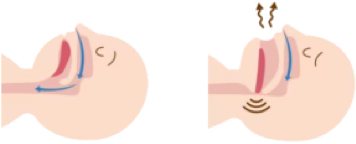 眠ているときに舌が喉の奥に落ち込んで、気道を狭くしたり塞いだりしてしまうことがあります。