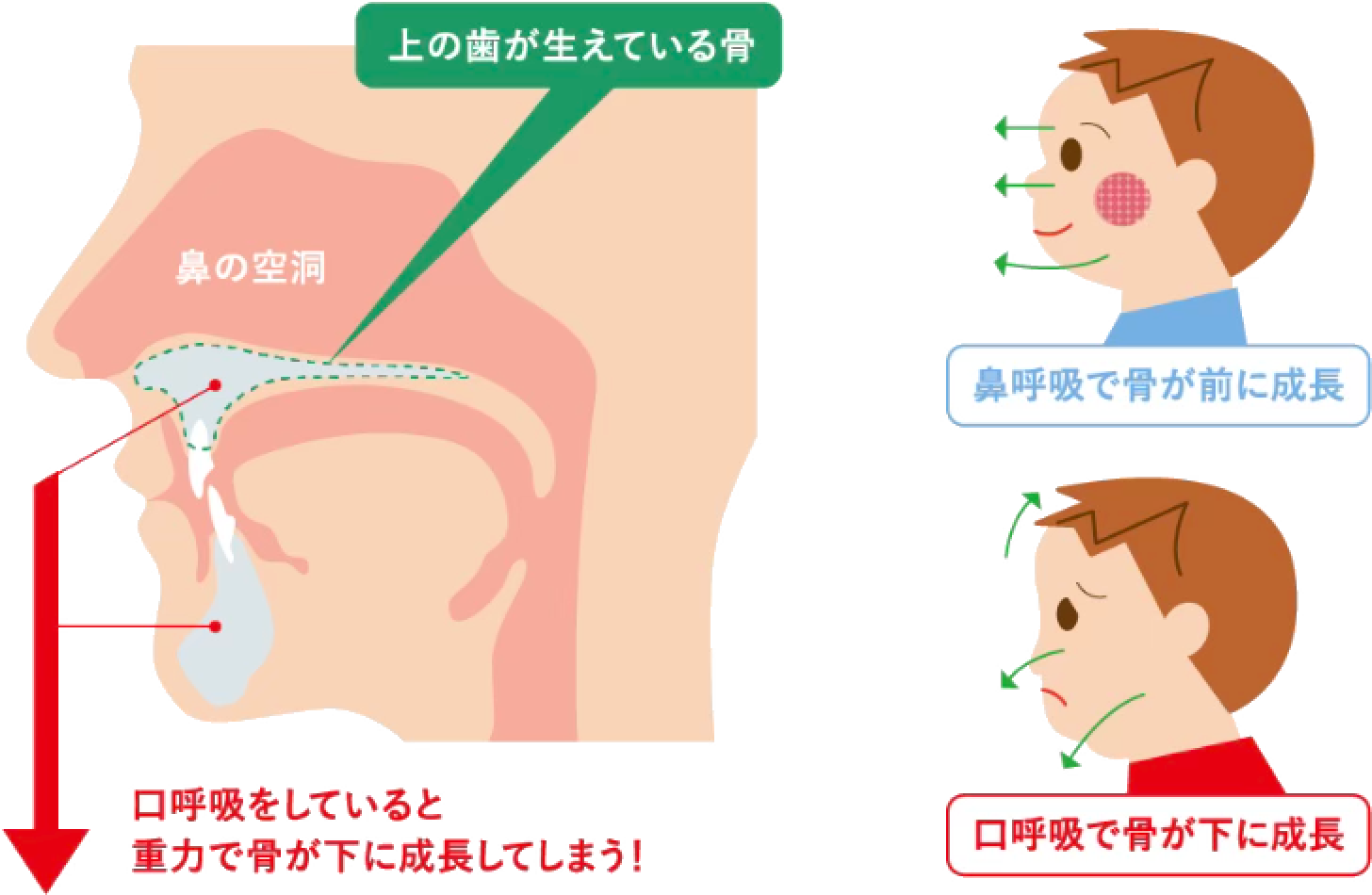 ポカンと開いた口の状態では顎の成長を促せず、歯がきれいに並ぶためのスペースの確保が難しくなるためです。